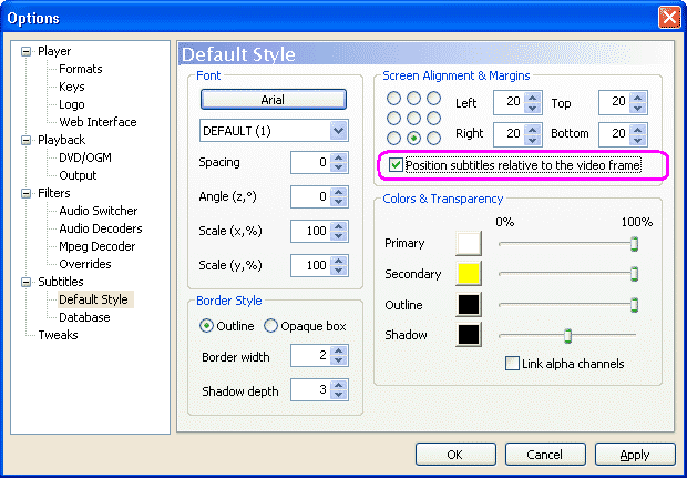 If you use VSFilter, unchecking "Pre-buffer subpictures" (see the picture above) will enable dynamic effects such as fading, karaoke (not as CPU-intensive as MPC's renderer). On MPC, Number of subpictures to buffer ahead (see the picture below) is 3 ~ 6 by default. If your CPU is really fast (2GHz+), set this value 0, and dynamic effects are enabled in softsubs.